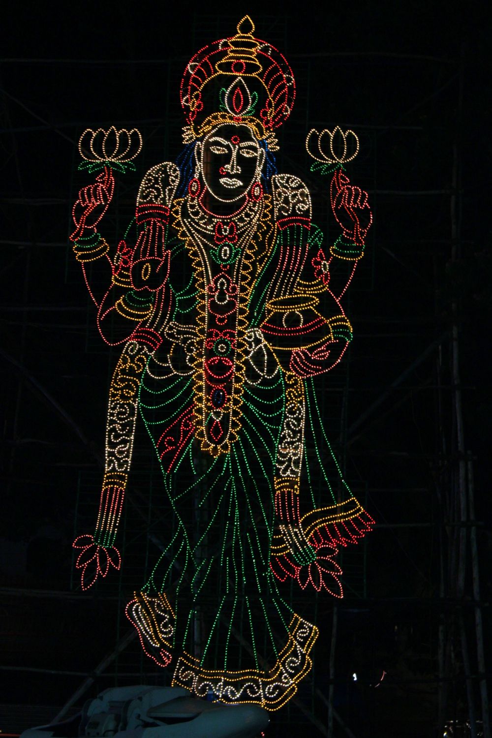 The sky in the Municipal Ground premises in Rajamundry attained a new look during the nights out of the illuminations emanated from the huge electrical cut outs set by electrical wing of TTD for the occasion.