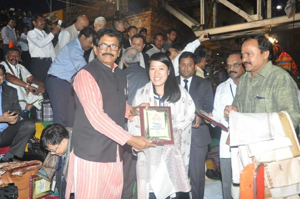 Chief Minister Chandrababu Naidu and Singapore Minster Iswaran participated in Godavari Harathi on Monday. Rajahmudry MP Murali Mohan felicitating the Singpore Team on this occassion.