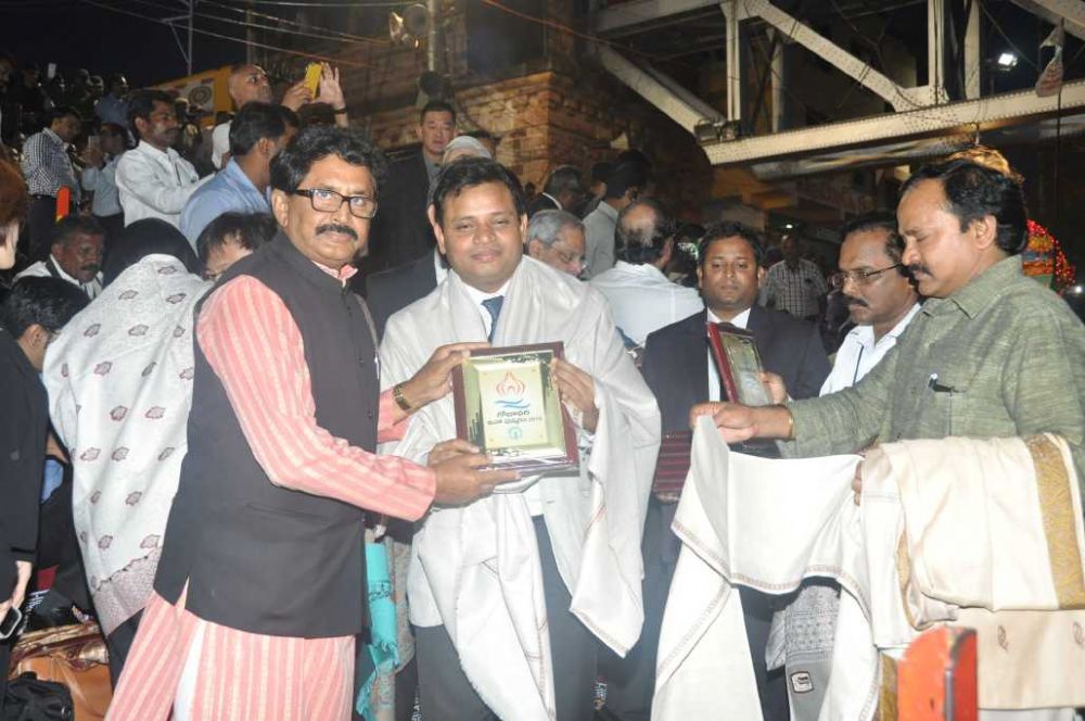 Chief Minister Chandrababu Naidu and Singapore Minster Iswaran participated in Godavari Harathi on Monday. Rajahmudry MP Murali Mohan felicitating the Singpore Team on this occassion.