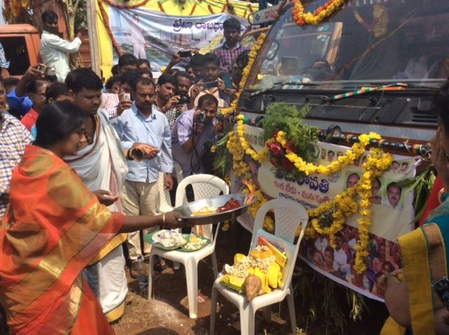 Minister for Civil Supplies Paritala Sunitha performed pooja to the collected Mana Matti - Mana Neeru from Anantapuram District on 21st October 2015.