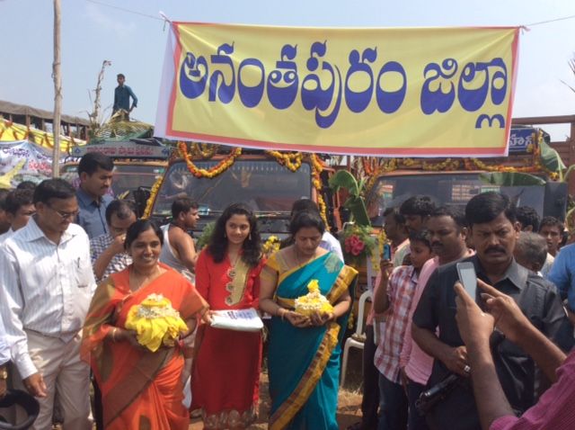 Minister for Civil Supplies Paritala Sunitha performed pooja to the collected Mana Matti - Mana Neeru from Anantapuram District on 21st October 2015.