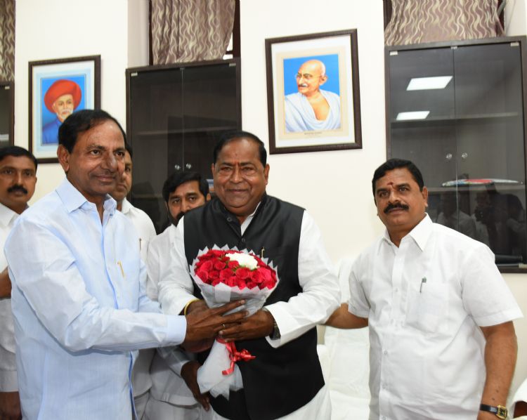 Chief Minister K. Chandrasekhar Rao congratulating Senior legislator Nethi Vidyasagar elected as the Deputy Chairman of Telangana State Legislative Council on 6th October 2015.