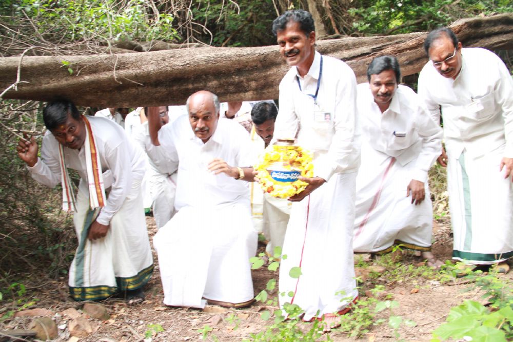 The unique campaign ' Mana Matti- Mana Neeru - Mana Amaravati - kicked off at Tirumala today with various TTD units making efforts to collect water and soil from Tirumala Hillocks . The water from holy thirthas and soil from sacred peaks of Seven Hills were being collected in vessels and would be handed over to CM Chandrababu Naidu.