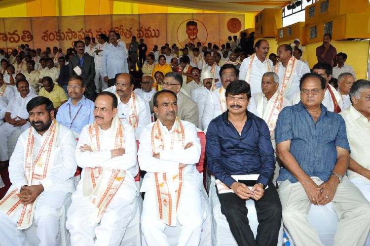 Narendra Modi Prime Minister of India seen Laying foundation stone for the New Capital City (Amaravati) of Andhra Pradesh at Uddandurayanupalem, Guntur District. Sri E.S.L. Narasimhan Governor, N.Chandrababu Naidu Chief Minister of AP & K.Chandrasekhar Rao Chief Minister of Telangana and other Dignitaries are also seen