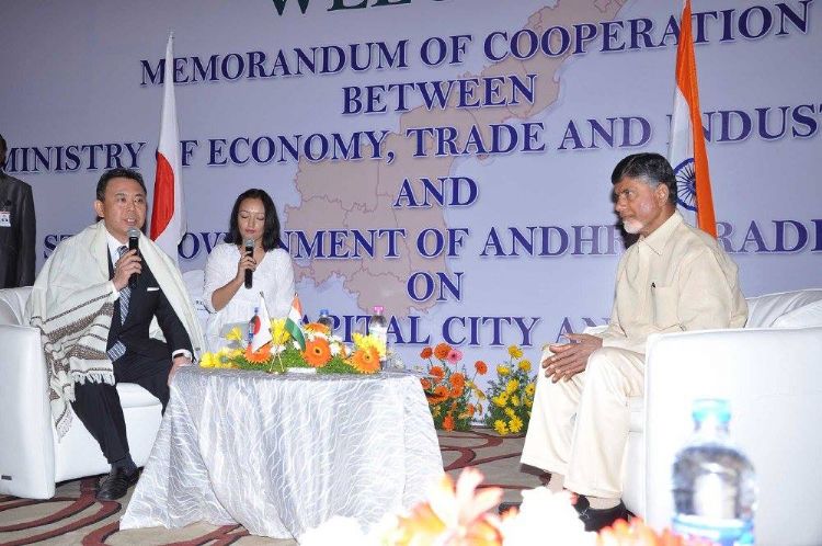 Narendra Modi Prime Minister of India seen Laying foundation stone for the New Capital City (Amaravati) of Andhra Pradesh at Uddandurayanupalem, Guntur District. Sri E.S.L. Narasimhan Governor, N.Chandrababu Naidu Chief Minister of AP & K.Chandrasekhar Rao Chief Minister of Telangana and other Dignitaries are also seen