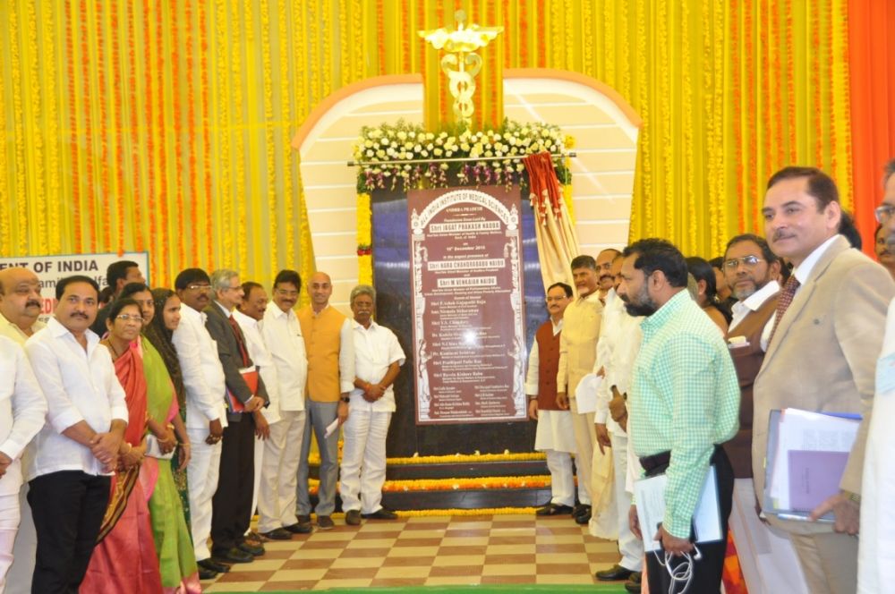 All India Institute of Medical Sciences Foundation Laying Ceremony at Mangalagiri on 19th December 2015. Andhra Pradesh CM Chandrababu Naidu, Union Minister M. Venkaiah Naidu, Health Minister Srinivas, other Ministers and MLAs participated in this Foundation Ceremony.