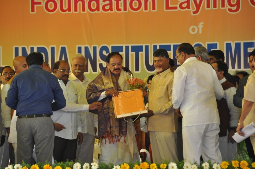 All India Institute of Medical Sciences Foundation Laying Ceremony at Mangalagiri on 19th December 2015. Andhra Pradesh CM Chandrababu Naidu, Union Minister M. Venkaiah Naidu, Health Minister Srinivas, other Ministers and MLAs participated in this Foundation Ceremony.