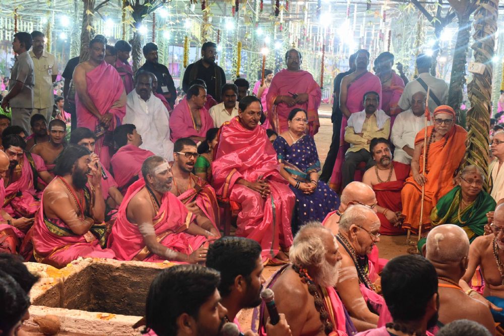 Chief Minister K. Chandrasekhar Rao and Union Ministers M. Venkaiah Naidu, Bandaru Datthathreya and others participated in Ayutha Chandi Yagam on Second Day at Yerravalli in Medak District.