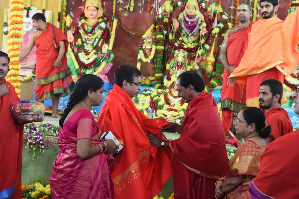 Telangana and AP Governor ESL Narasimhan, Tamil Nadu Governor K. Rosaiah, NCP supremo Sharad Pawar and several other personalities on Saturday attended the ongoing 'Ayutha Chandi Maha Yagam'.
