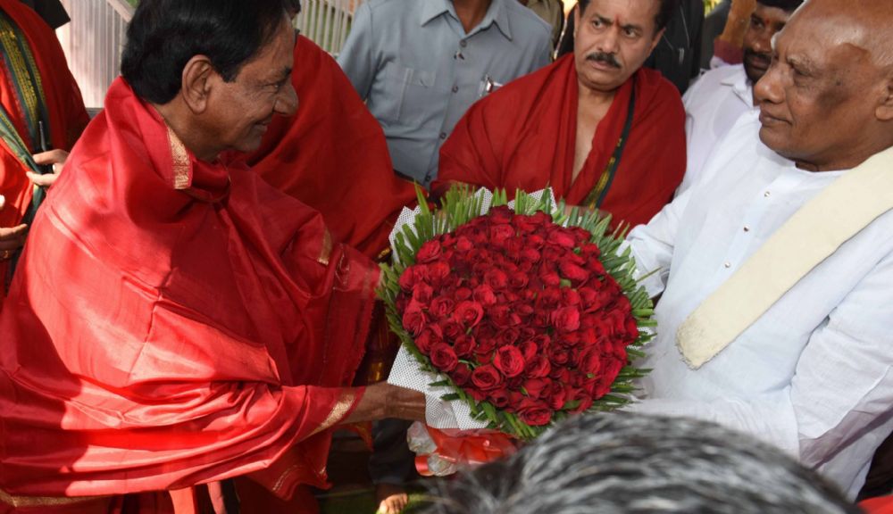 Telangana and AP Governor ESL Narasimhan, Tamil Nadu Governor K. Rosaiah, NCP supremo Sharad Pawar and several other personalities on Saturday attended the ongoing 'Ayutha Chandi Maha Yagam'.