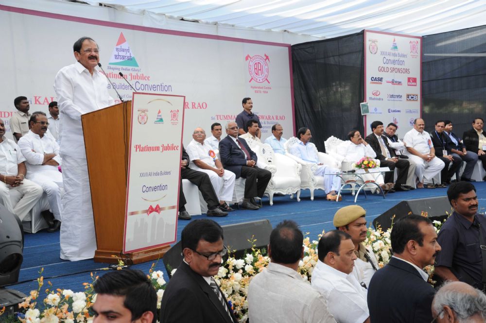 Chief Minister K. Chandrashekhar Rao, Union Minister M. Venkaiah Naidu participated in the Platinum Jubilee of XXVII All India Builders Convention at Ramoji Film City on 8th January 2016.