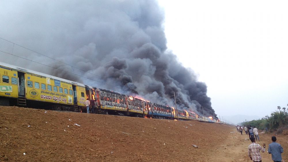 The Kapu Ikya Garjana held in Tuni in East Godavari district on Sunday, demanding inclusion of Kapu community in BC list, turned violent with protesters setting ablaze coaches of Ratnachal Express, a police station and other properties.