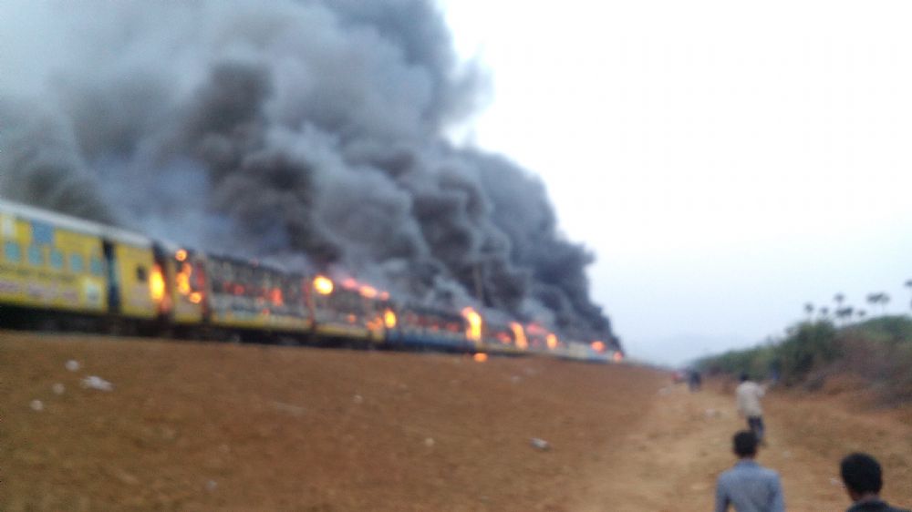 The Kapu Ikya Garjana held in Tuni in East Godavari district on Sunday, demanding inclusion of Kapu community in BC list, turned violent with protesters setting ablaze coaches of Ratnachal Express, a police station and other properties.