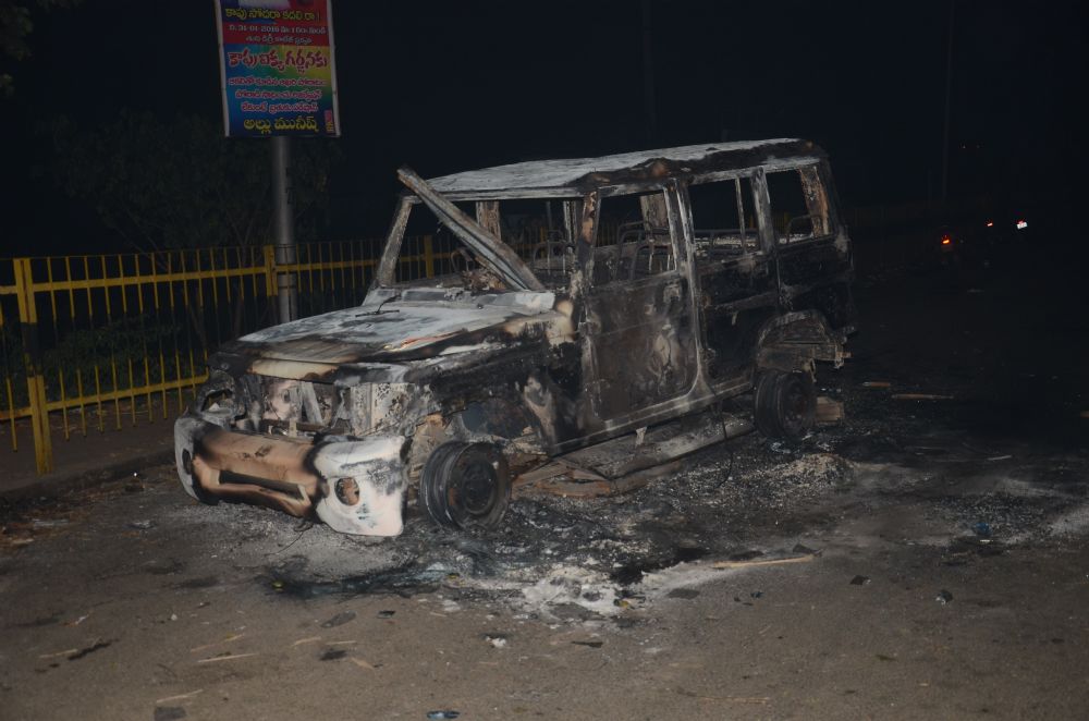 The Kapu Ikya Garjana held in Tuni in East Godavari district on Sunday, demanding inclusion of Kapu community in BC list, turned violent with protesters setting ablaze coaches of Ratnachal Express, a police station and other properties.