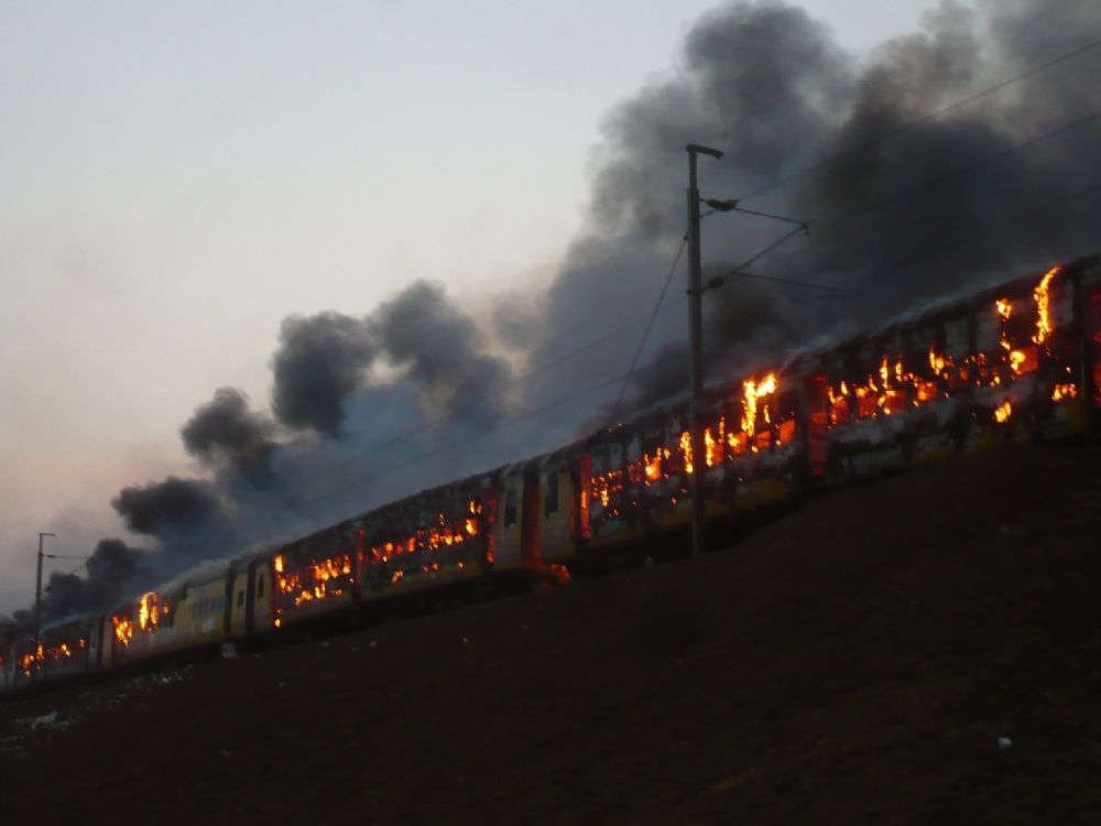 The Kapu Ikya Garjana held in Tuni in East Godavari district on Sunday, demanding inclusion of Kapu community in BC list, turned violent with protesters setting ablaze coaches of Ratnachal Express, a police station and other properties.