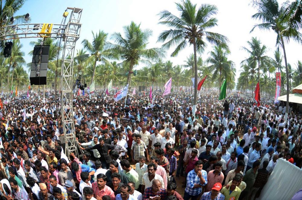 The Kapu Garjana in Tuni has turned violent. Cutting across parties many kapus attended the meeting and it was a sea of people at Tuni on 31st January 2016.