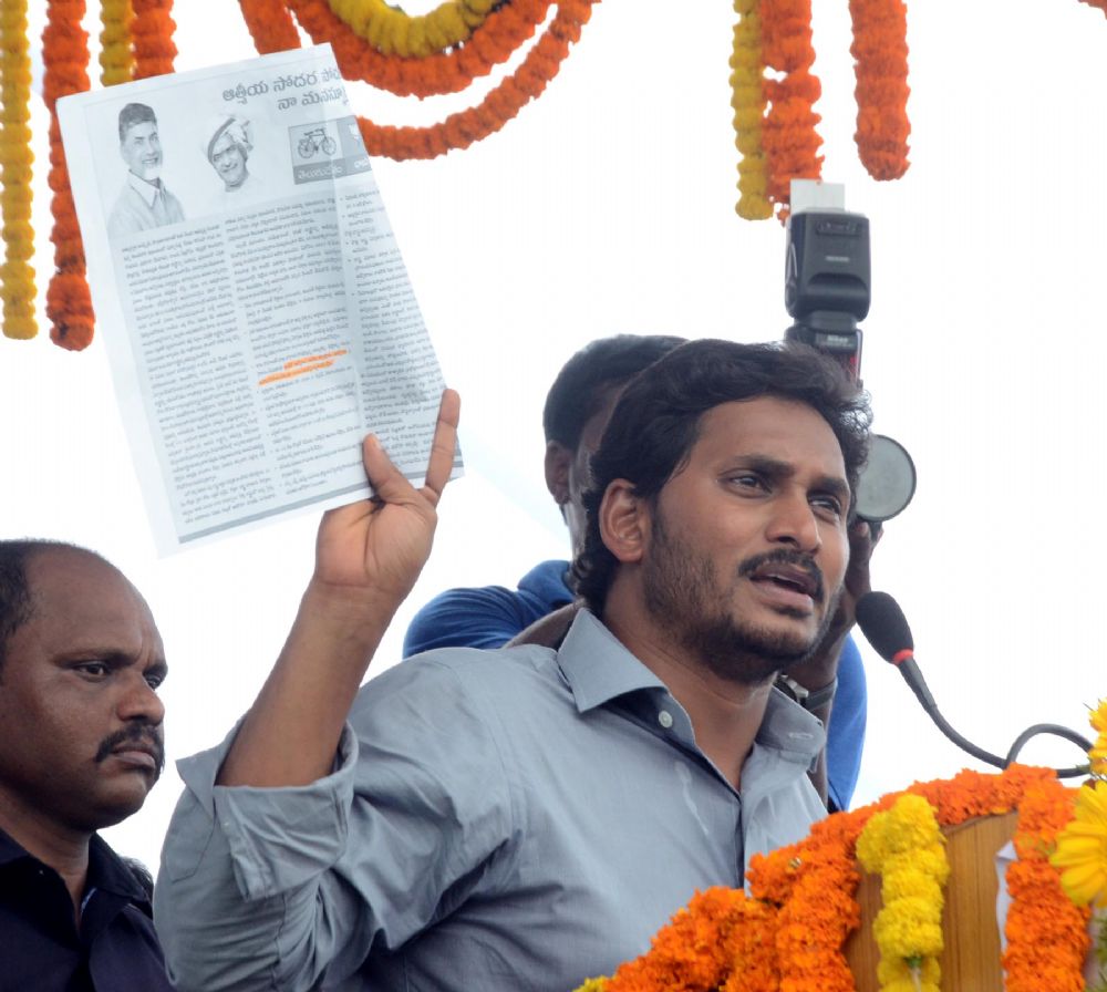 YSRCP Chief YS Jagan Mohan Reddy addressed thousands of youth in the "Yuva Bheri" programme held at Town hall in Srikakulam on Tuesday.