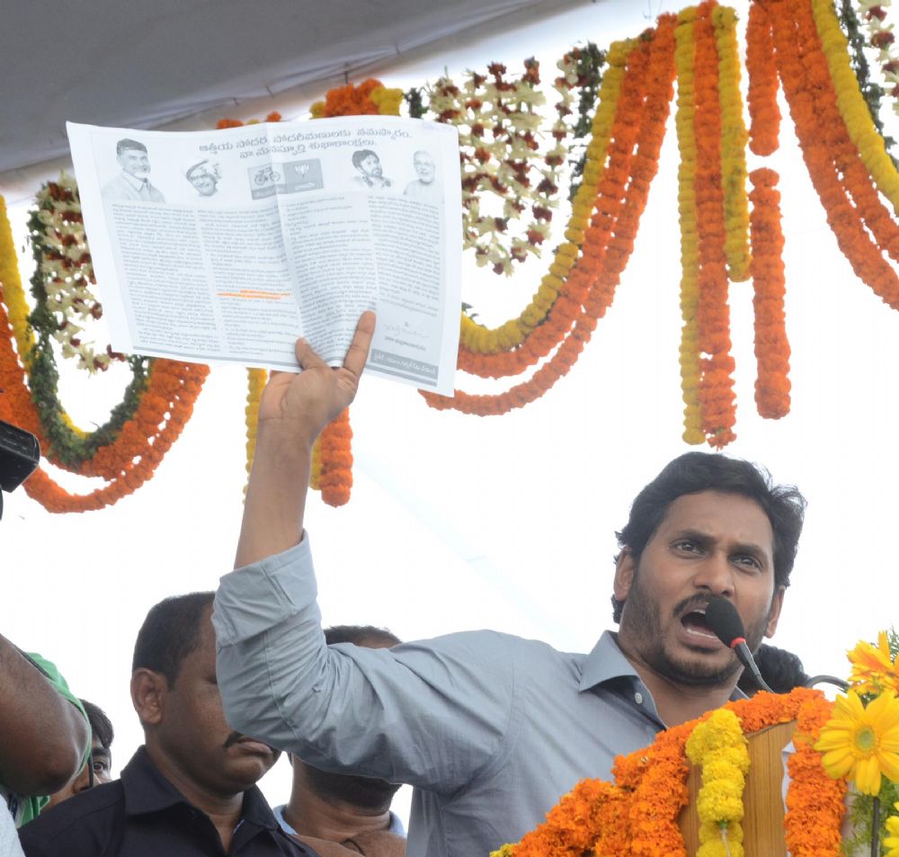 YSRCP Chief YS Jagan Mohan Reddy addressed thousands of youth in the "Yuva Bheri" programme held at Town hall in Srikakulam on Tuesday.