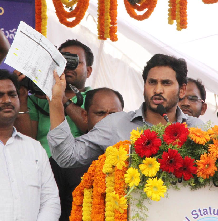 YSRCP Chief YS Jagan Mohan Reddy addressed thousands of youth in the "Yuva Bheri" programme held at Town hall in Srikakulam on Tuesday.