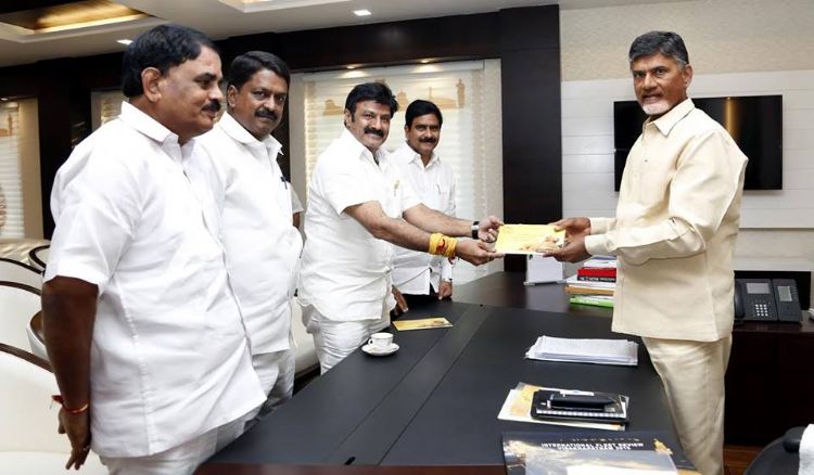 Hindupur MLA Nandamuri Balakrishna met Andhra Pradesh Chief Minister Chandrababu Naidu on Wednesday and extended the invitation to participate in Lepakshi festival that will be held on 27th and 28th February.
