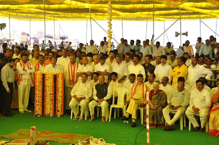 Andhra Pradesh Chief Minister N.Chandra Babu Naidu laying foundation stone for Temporary Secretariat Building at Velagapudi on 17th February 2016.