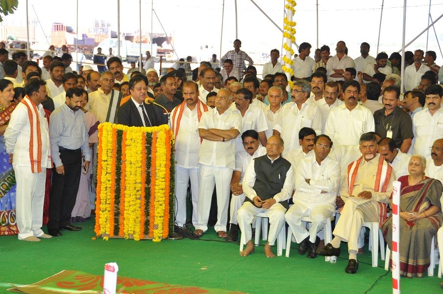 Andhra Pradesh Chief Minister N.Chandra Babu Naidu laying foundation stone for Temporary Secretariat Building at Velagapudi on 17th February 2016.
