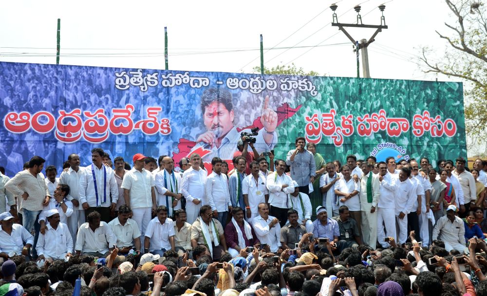 YSRCP Chief YS Jagan Mohan Reddy staged a dharna seeking special status to Andhra Pradesh in front of the Collectorate in Kakinada to on 10th May 2016.