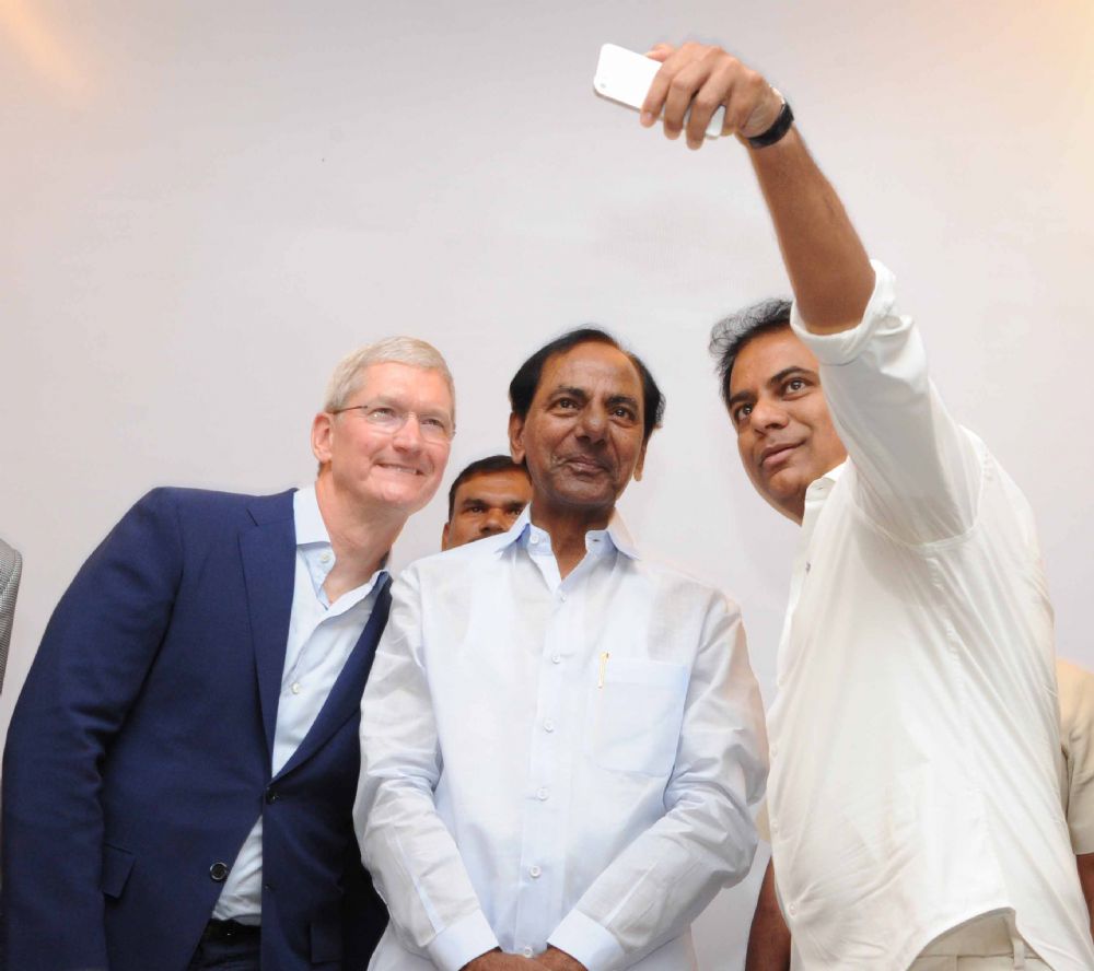 Chief Minister K. Chandrashekar Rao inaugurated the Apple Development Centre along with the Apple CEO Tim Cook and IT Minister KT Rama Rao at Waverock building, Nanakramguda, Hyderabad on 19th May 2016.