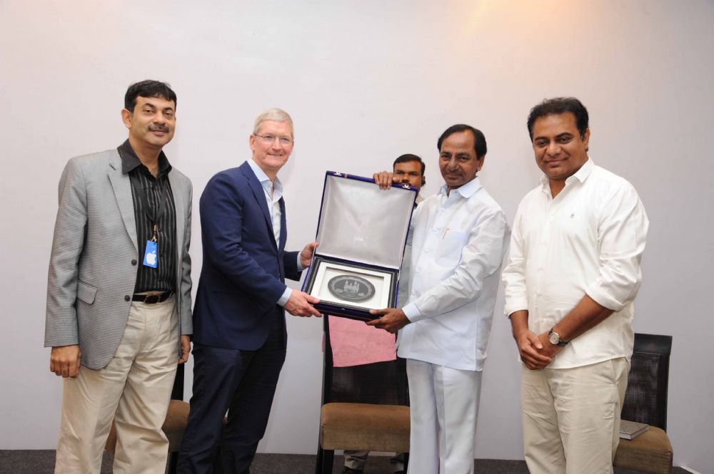 Chief Minister K. Chandrashekar Rao inaugurated the Apple Development Centre along with the Apple CEO Tim Cook and IT Minister KT Rama Rao at Waverock building, Nanakramguda, Hyderabad on 19th May 2016.