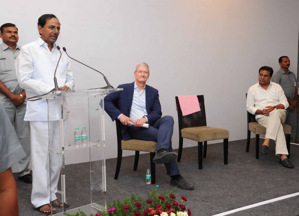 Chief Minister K. Chandrashekar Rao inaugurated the Apple Development Centre along with the Apple CEO Tim Cook and IT Minister KT Rama Rao at Waverock building, Nanakramguda, Hyderabad on 19th May 2016.