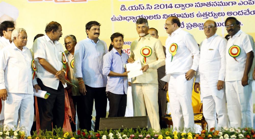 Andhra Pradesh Chief Minister N. Chandrababu Naidu participated in DSC 2014 Teachers Appointment programme organised in Vijayawada on 1st June 2016.