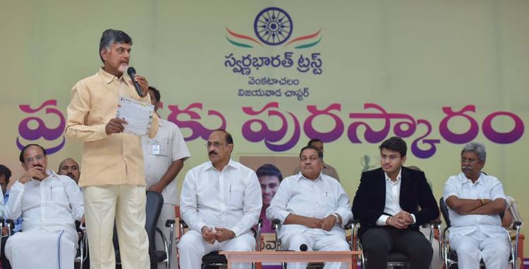 After launching Vidyanjali scheme of the Government of India in the state on Thursday, AP Chief Minister N. Chandrababu Naidu along with Union Minister Venkaiah Naidu presented the Pratibha Awards to merit students of government schools.