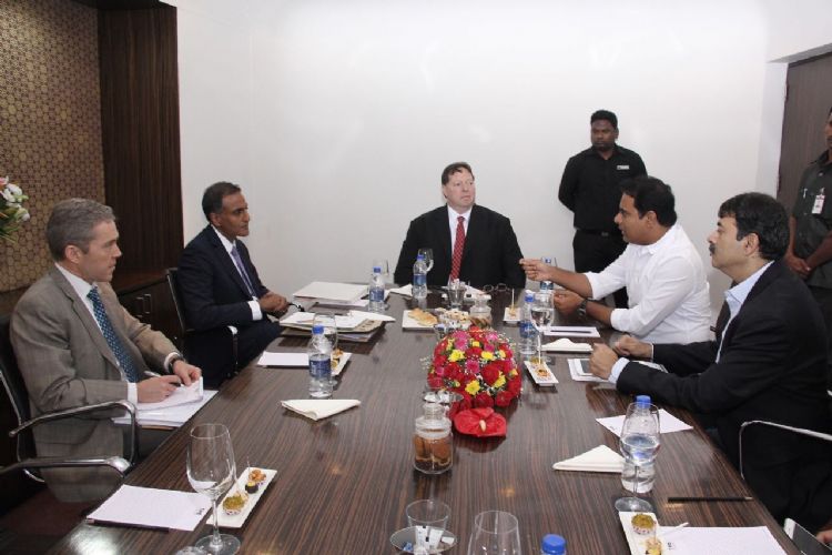 IT Minister K. Taraka Rama Rao meets US ambassador Mr.Richard R Vermaon in Hyderabad on 24th June 2016.