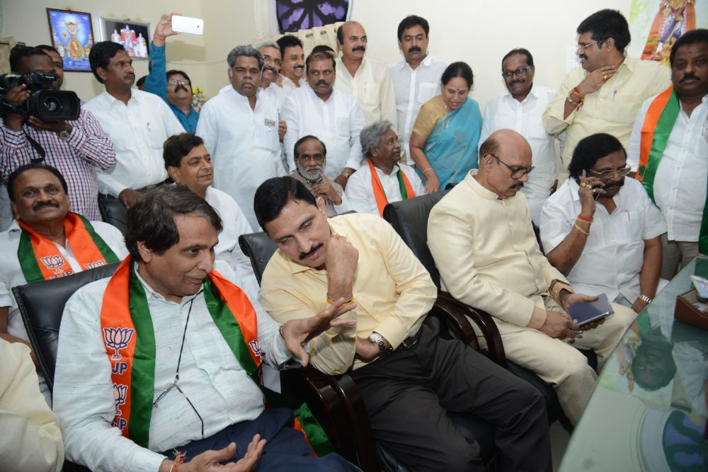 Newly elected Rajya Sabha members from Andhra Pradesh Suresh Prabhu, T.G. Venkatesh, Y.S. Chowdary Reciving Cretificates From Returning Officer K.Satyanarayana, Secretary, APLA on 3rd June 2016.