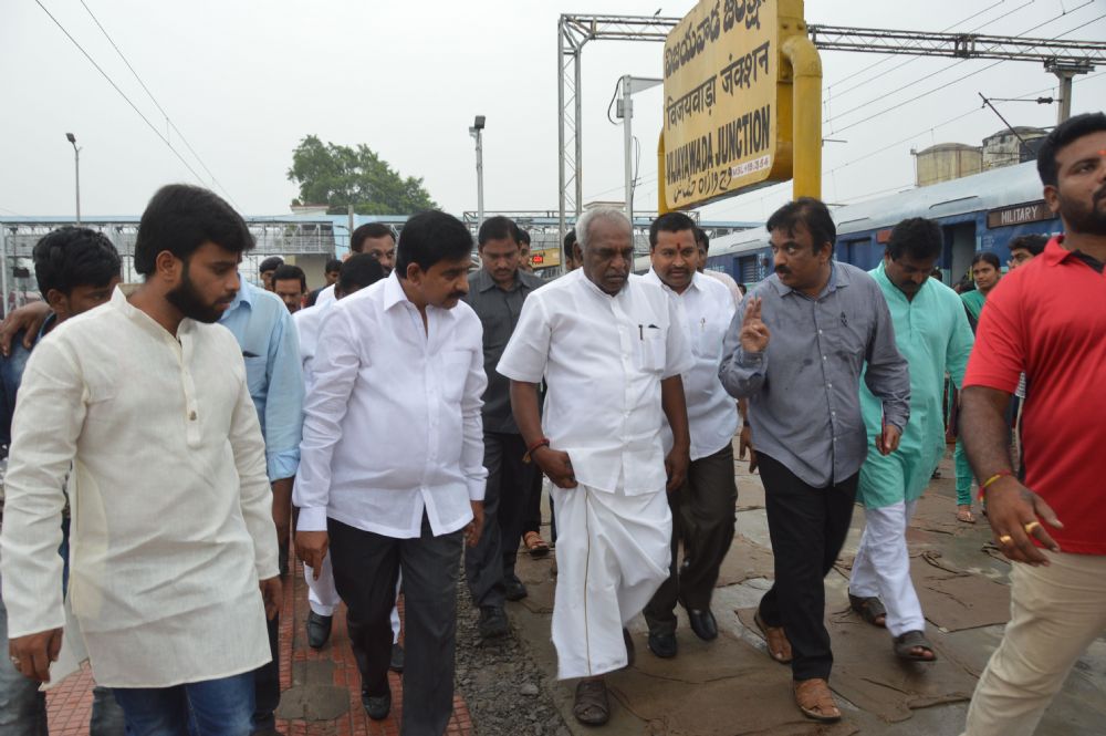 Andhra Pradesh Irrigation Minister Devineni Uma Maheswara Rao receiving RADHAKRISHNAN, Union Minister of State for Road, Transport, Highways & Shipping in Vijayawada Railway Station on7th June 2016.