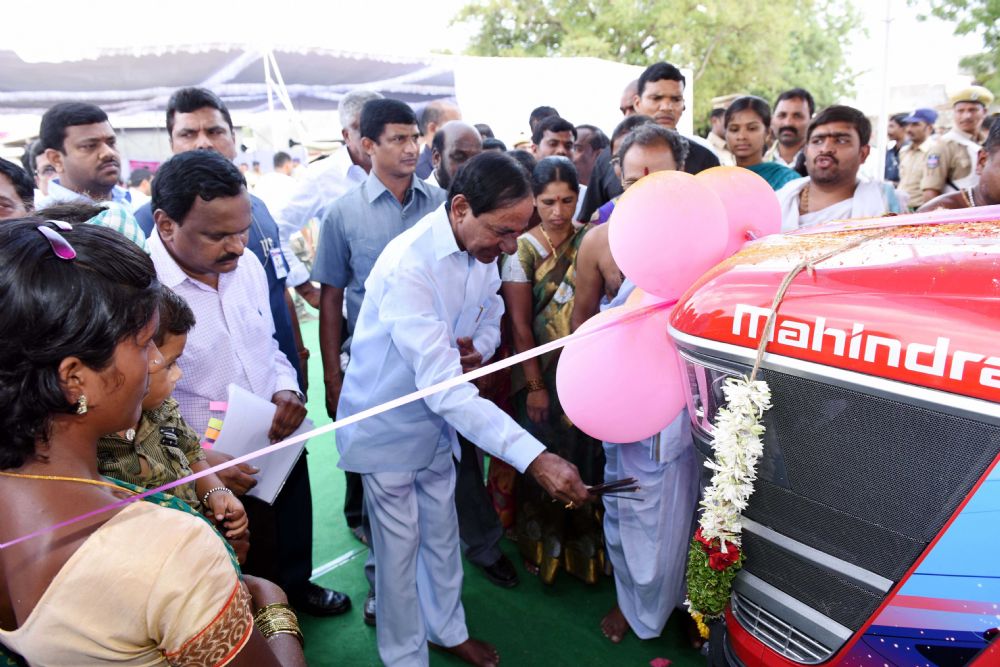 Chief Minister K. Chandrashekhar Rao distributing Tractors and participated in public meeting at Erravalli and Narsannapet villages of Jagdevpur mandal of Medak district on 10th June 2016.