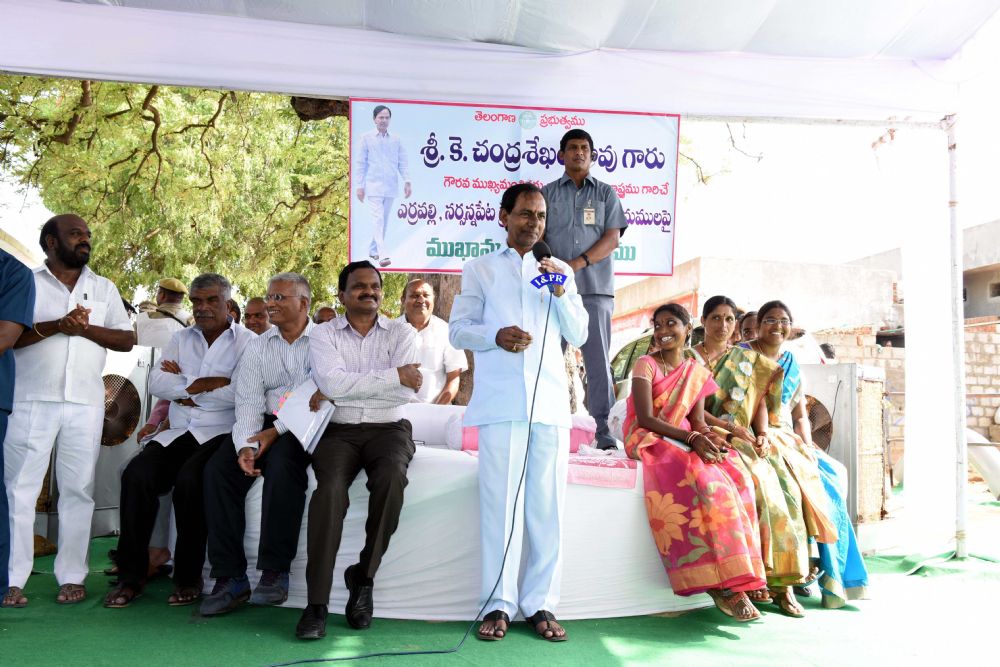 Chief Minister K. Chandrashekhar Rao distributing Tractors and participated in public meeting at Erravalli and Narsannapet villages of Jagdevpur mandal of Medak district on 10th June 2016.