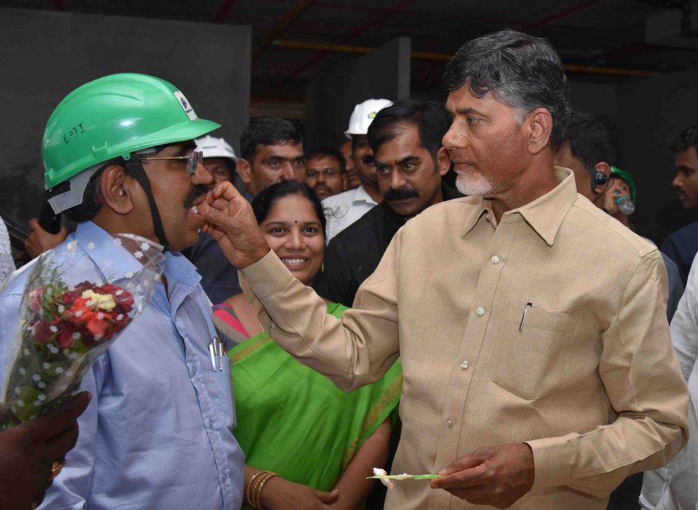 Andhra Pradesh Chief Minister N. Chandrababu Naidu inspecting the on going Secretariat building works in Velagapudi on 15th June 2016.