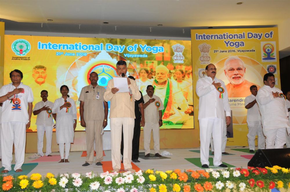 Union Railways Minister Suresh Prabhakar Prabhu joined Andhra Pradesh Chief Minister N. Chandrababu Naidu to participate in the International Yoga Day celebrations at A-Convention Centre in Vijayawada on Tuesday.