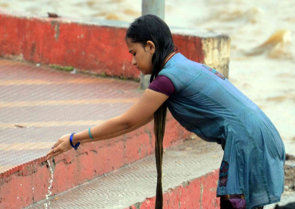 Piligrims are taking a holy dip on Day 4 of Anthya Pushkaralu of River Godavari at Rajamahendravaram on 3rd August 2016.