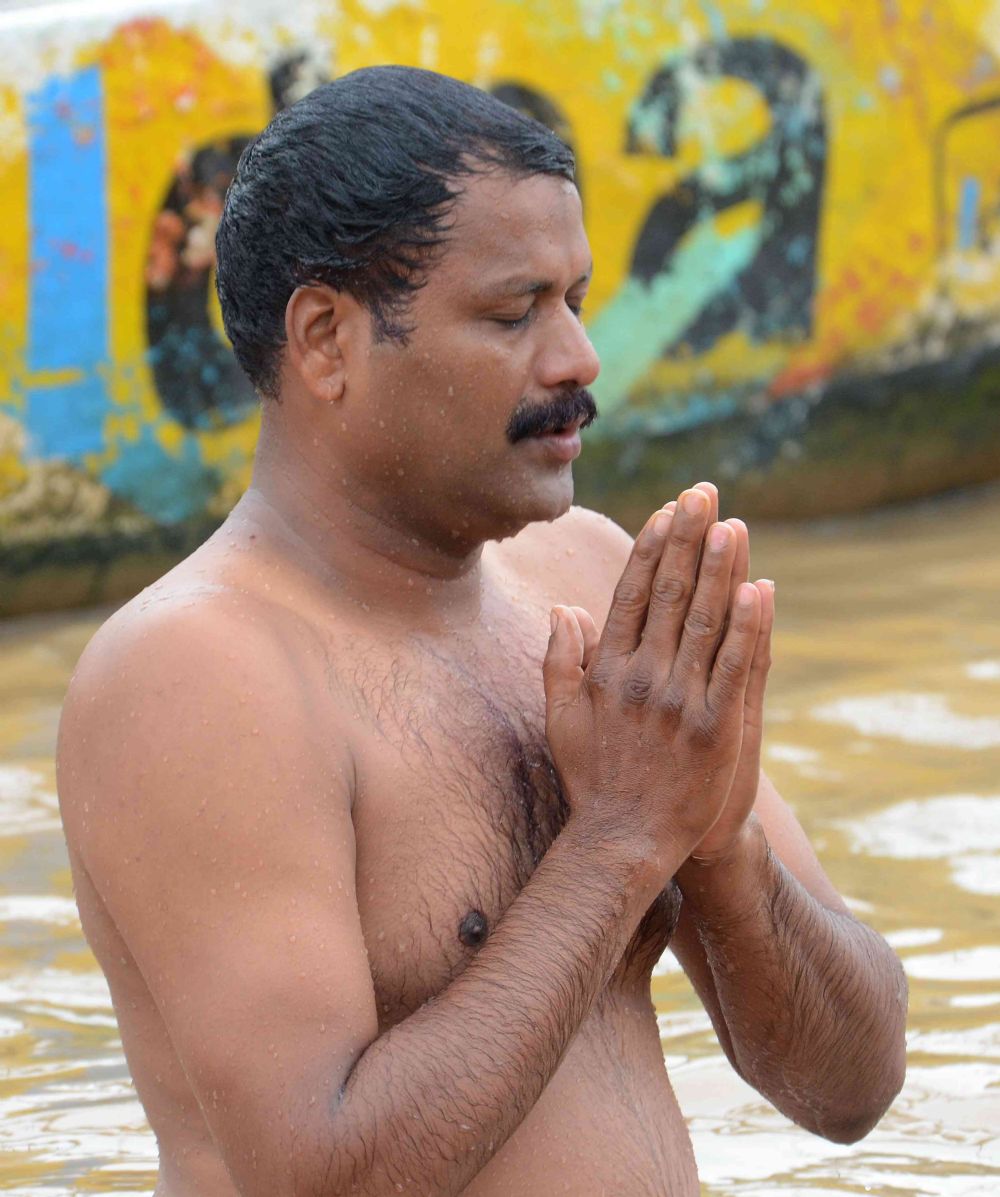 Piligrims are taking a holy dip on Day 4 of Anthya Pushkaralu of River Godavari at Rajamahendravaram on 3rd August 2016.