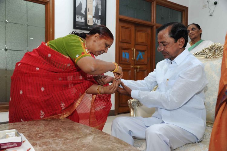 On the auspicious occasion of Raksha Bhandhan Sisters of CM and others tied Rakhi to Chief Minister K. Chandrashekhar Rao at Camp Office on 18th August 2016.