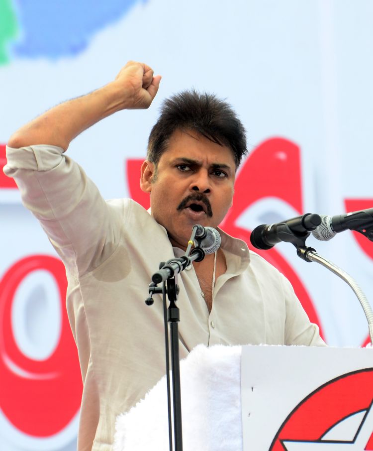 President of the Janasena Party and Cine Actor Pawan Kalyan addressing the public over the burning issue of Special Category Status to Andhra Pradesh State in meeting organised in Kakinada on 9th September 2016.
