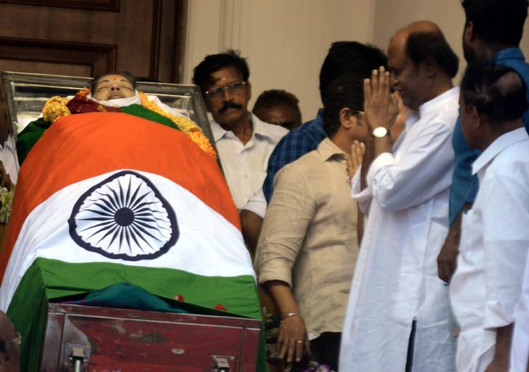 Tamil Nadu Chief Minister Jayalalitha was buried next to the memorial of Dr MGR at Marina Beach in Chennai. Lakhs of followers gathered along the route to pay their final respects to Jayalalitha on 6th December 2016.