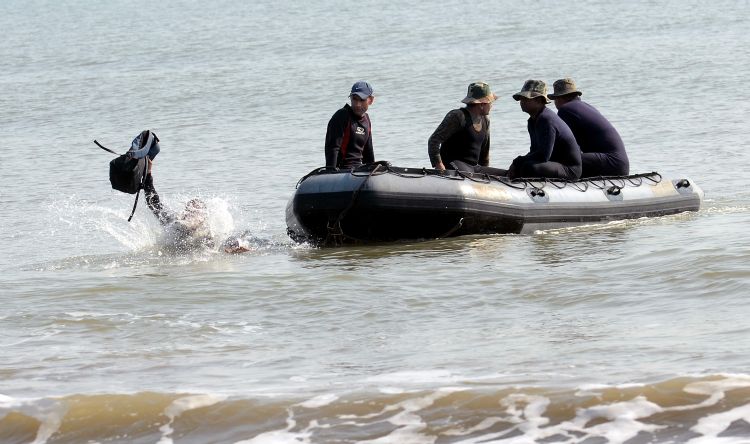 Indian Army from Visakhapatnam and Eastern Range performing exercises in Bay of Bengal at Kakinada Coast on 21st December 2016.