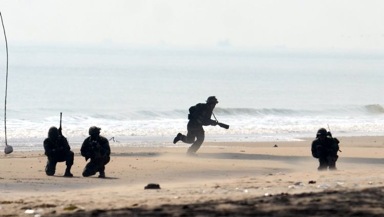 Indian Army from Visakhapatnam and Eastern Range performing exercises in Bay of Bengal at Kakinada Coast on 21st December 2016.