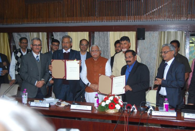 Andhra Pradesh and Haryana Governments exchanging of MoU documents of 'e-pragati, smart pulse survey' in the presence of both Chief Ministers in New Delhi on 28th December 2016.