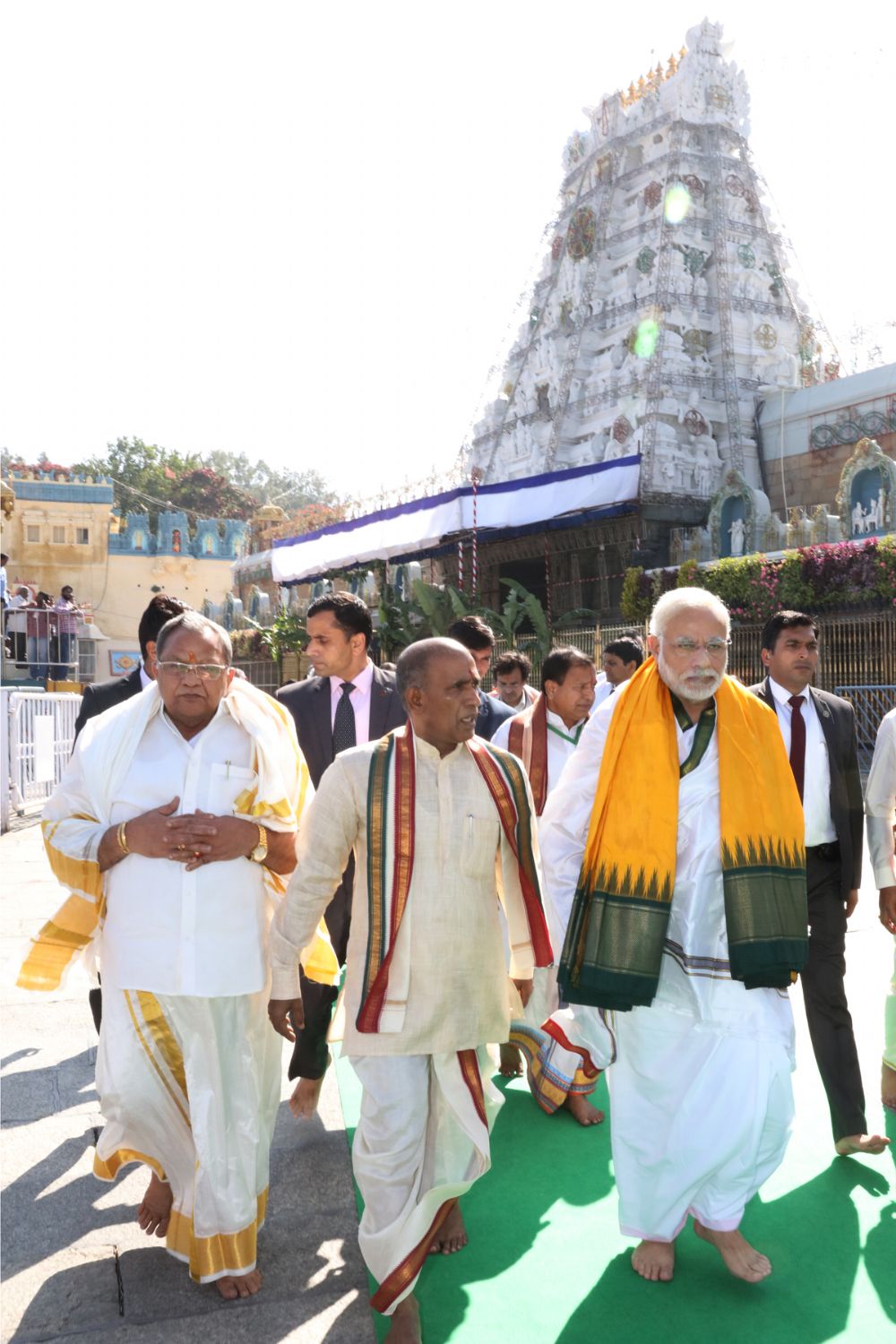 Prime Minister of India, Narendra Modi on Tuesday offered prayers at the famous hill shrine of Lord Venkateswara in Tirumala. He was accompanied by Governor E.S.L. Narasimhan, Chief Minister N. Chandrababu Naidu, Union Minister Sujana Chowdary for darshan.