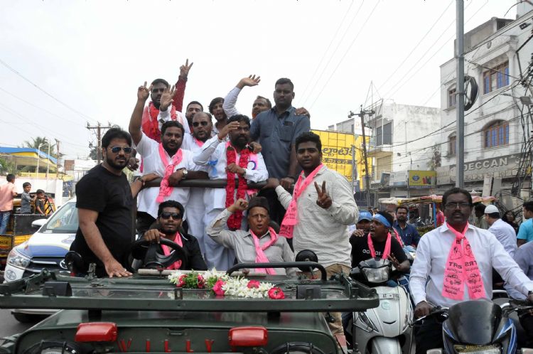 TRS Bahadurpura candidate Mir Inayath Ali Baqri takes out rally on the last day of election campaign on Wednesday - INN Photos