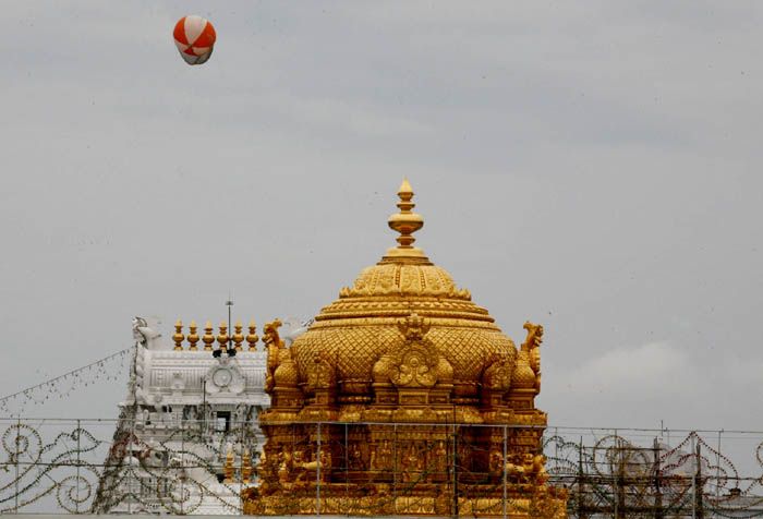 Security has been beefed up at al locations of huge devotee congregation in the hill shrine of Tirumala as the nine annual festival of Salakatla Brahmotsavam kicks off to huge crowds from Saturday. Aerial surveillance of the 3 km radius of Tirumala hill shrine on an experimental basis has been taken up . A highly sophisticated camera with high resolution zooming capacity has been fixed to a large helium balloon that floats high in the air during the period of Garudotsavam.
